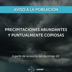 Alerta INUMET por precipitaciones abundantes y puntualmente copiosas a partir de la noche del domingo 22
