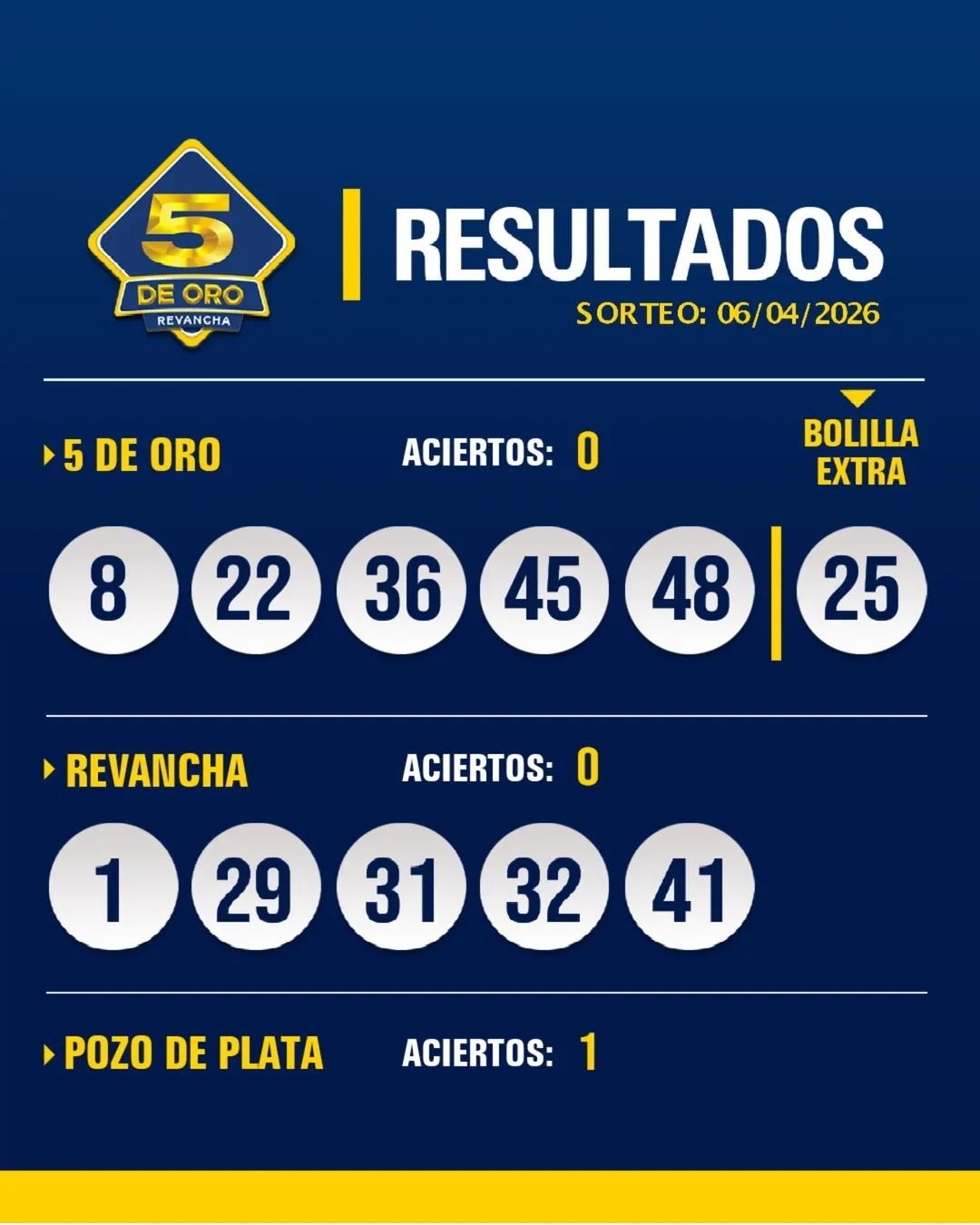 Les compartimos los resultados del sorteo del 5 de Oro...