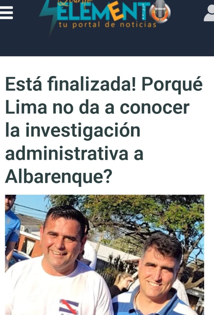 Desde Quinto Elemento lo dijimos desde hace mucho tiempo y hoy Intendencia de Salto lo confirma . Deja sin efecto investigación administrativa a Albarenque y Guarino «porque no son más funcionarios», ahora es difícil de comprender la decisión,teniendo en cuenta que la investigación era en área de tránsito y comprendía a otros funcionarios municipales,entre ellos una abogada y el encargado de cuerpo inspectivo. Todos forman parte del área de tránsito . Una vez más lo importante, lo ético ,lo jurídico queda a un lado. Es muy difícil dar a conocer el resultado de la investigación administrativa? Es tan negativa la investigación que no la dan a conocer? Claro , es más fácil decir que la dejan sin efecto tres meses después .