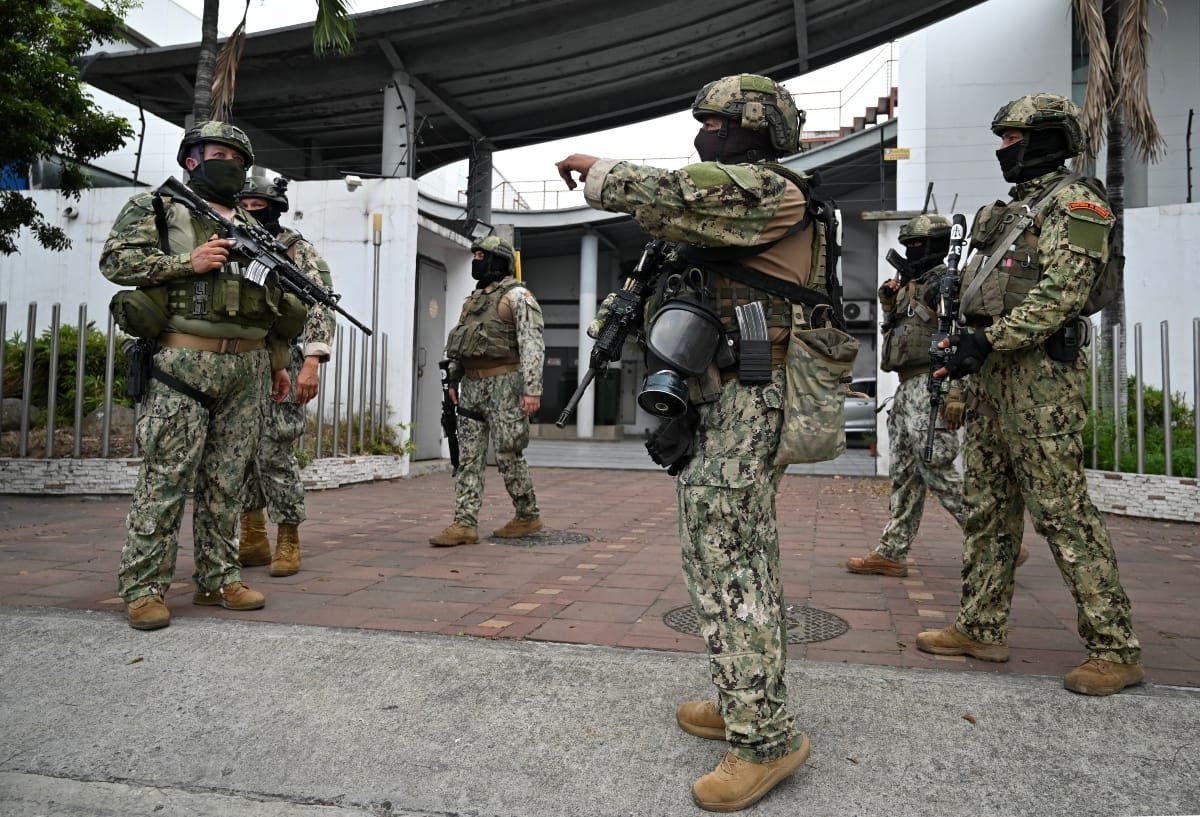 «No disparen por favor, no disparen», se escucha decir a una mujer en las imágenes televisadas, mientras otras personas sentadas en el piso se cubren el rostro. El lunes, el gobierno ecuatoriano ordenó un estado de excepción de 60 días para responder a una ola de violencia con policías secuestrados, fuga de presos y ataques con explosivos.