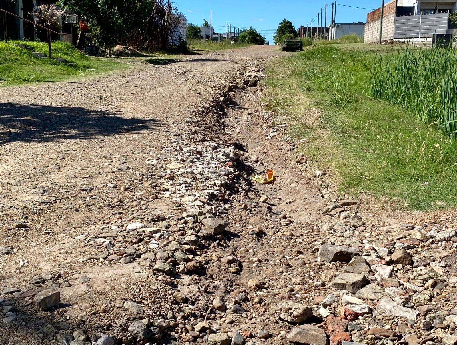 más específicamente. La calle allí se encuentra literalmente intransitable, ocasionando varios inconvenientes a los vecinos de la zona.