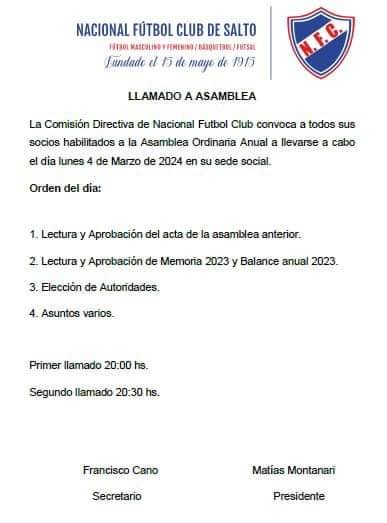 Esperamos a todos los socios en la asamblea del club. Ingreso por puerta que da a cantina.