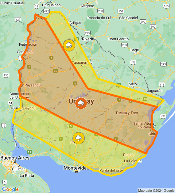 Alerta naranja y amarilla por Tormentas fuertes y lluvias intensas