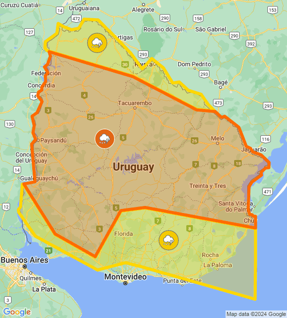 Alerta naranja y amarilla por Tormentas fuertes y lluvias intensas