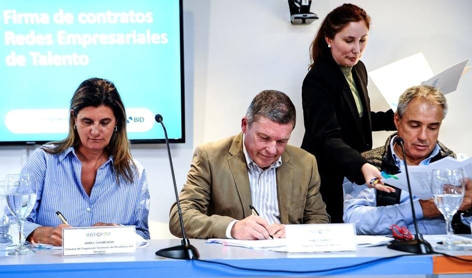 Este lunes 6, el titular del Instituto Nacional de Empleo y Formación Profesional (Inefop), Pablo Darscht, suscribió un acuerdo con entidades que se encuentran en proceso de conformación de las Redes Empresariales de Talento (RET). Dicha iniciativa, presentada en 2023, pretende mejorar la competitividad y la internacionalización de las empresas mediante la inversión sostenida en atracción, desarrollo y retención del talento.