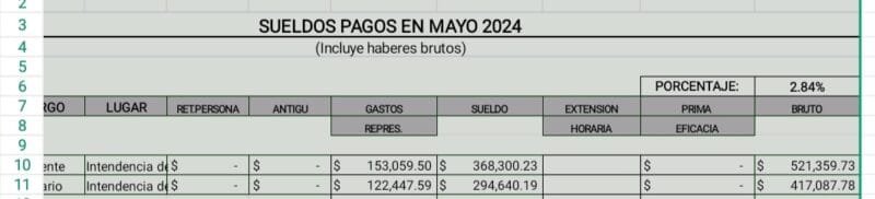Un intendente que recordemos dijo públicamente que iba a solicitar campaña sin goce de sueldo a partir de Marzo y no lo hizo , la solicitud pero la licencia para su campaña continuó, cómo desde hace muchos años.En este sin fin de historias , vuelve a nombrar designaciones directas estos días ,que Adeoms no se entera , como la del hijo de su chófer Iris R., el hijo de un carnicero del Cerro, en Camino del Exodo ,la hermana de su secretario, Julieta en biblioteca Felisa Lisasola. Alguna de estos días , suerte que la modalidad es concurso como me dijo un amigo , concurso con dedito , liso y llano. Pero la cosa empeora aún más cuando en diciembre le otorga una compensación a su secretario . El año pasado, y según Resolucion 426/2023, de fecha 20 de diciembre, los salteños le pagamos a Angelo, con retroactividad al 1 de diciembre, una compensación mensual por $ 17.500. La misma se pago por los meses de Diciembre a Febrero, por lo que estaríamos hablando de un total de $ 52.500.Pero eso no termina acá con fecha de 28 de febrero 2024 , se revocó esa resolución, la cual dio lugar a la 67/2024, donde Lima establece que los salteños debemos pagarle a Angelo partir de marzo, el 7 % del sueldo básico del intendente. Claro, la compensación no aumenta, a diferencia que el 7% SI aumenta.Un sueldo del intendente de aproximadamente según la tabla oficial publicada de 521.359 pesos , de sueldo bruto ,sumado aquí 153 mil pesos de gastos de representación.