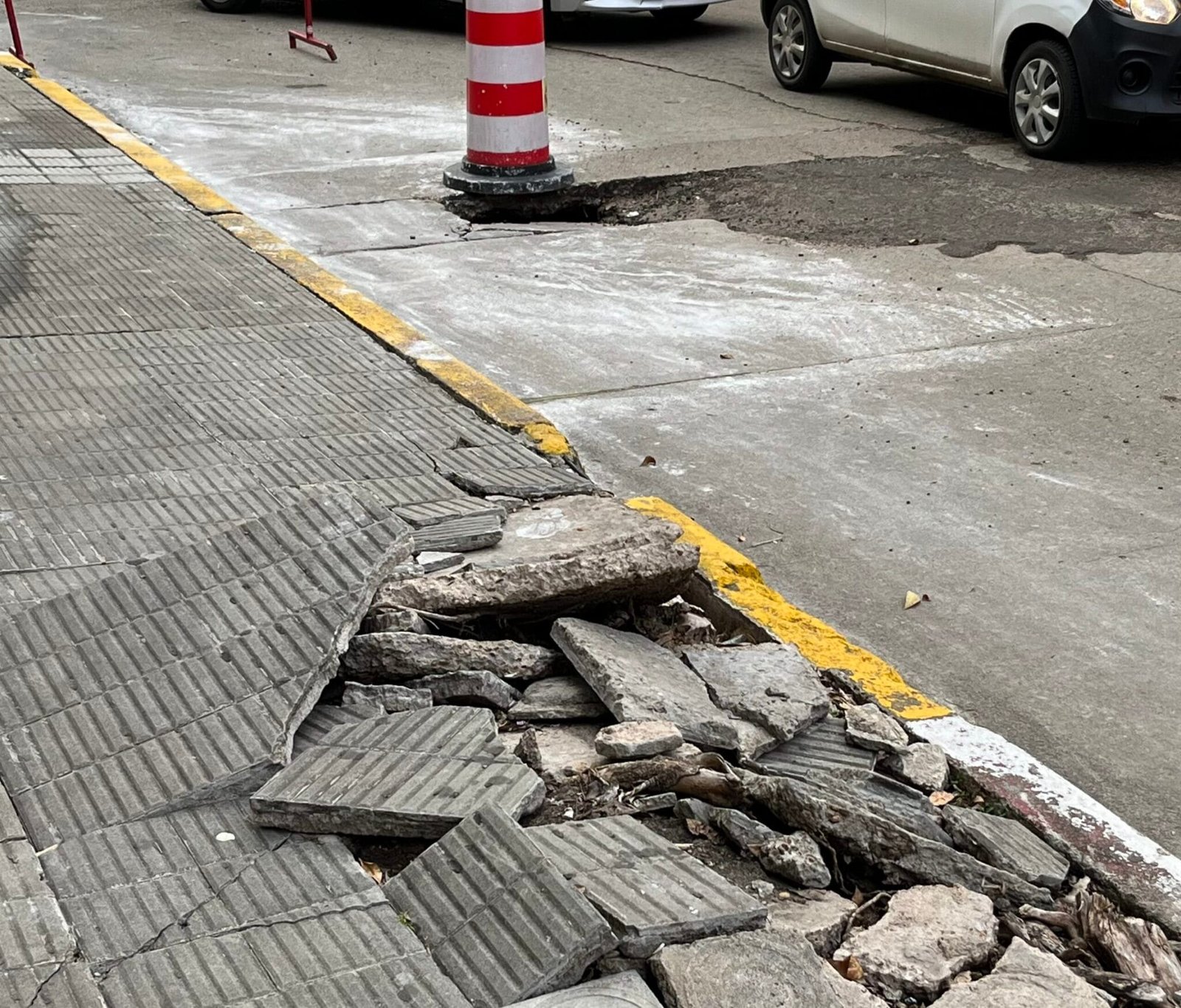 El Edil Facundo Marziotte, hizo mención a un hundimiento de pavimento y el mal estado de la vereda, en la Calle Larrañaga, cerca de donde se ubica su local partidario de la Lista 12 (Casi calle Artigas), pegado al BSE.