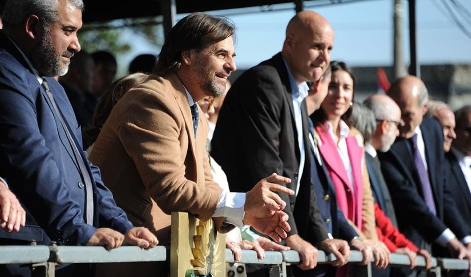 Durante la ceremonia, el mandatario estuvo acompañado por la vicepresidenta de la República, Beatriz Argimón; el secretario y la prosecretaria de la Presidencia, Rodrigo Ferrés y Mariana Cabrera, respectivamente, y los ministros de Defensa, Armando Castaingdebat; Economía y Finanzas, Azucena Arbeleche; Relaciones Exteriores, Omar Paganini; Educación y Cultura, Pablo da Silveira; Transporte, José Luis Falero; Interior, Nicolás Martinelli; Desarrollo Social, Alejandro Sciarra; Trabajo, Mario Arizti, e Industria, Elisa Facio.