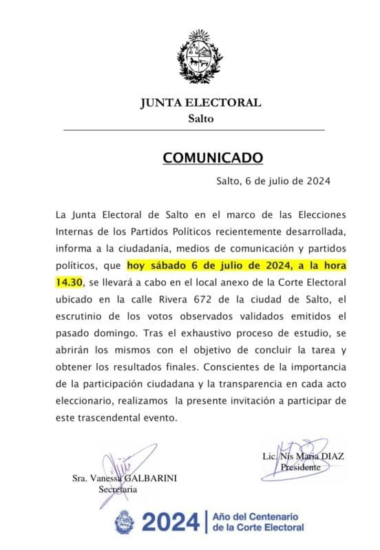 Comparte esta nota: Compartir en X (Twitter) Compartir en Facebook Compartir en Email Compartir en WhatsApp Navegación de entradas Sindicato de Hospital Regional Salto no se presentó a Mesa de diálogo en ASSE Observados: Ganó la lista 85 y el Dr. Horacio de Brum es el candidato a Diputado en sector de Malaquina