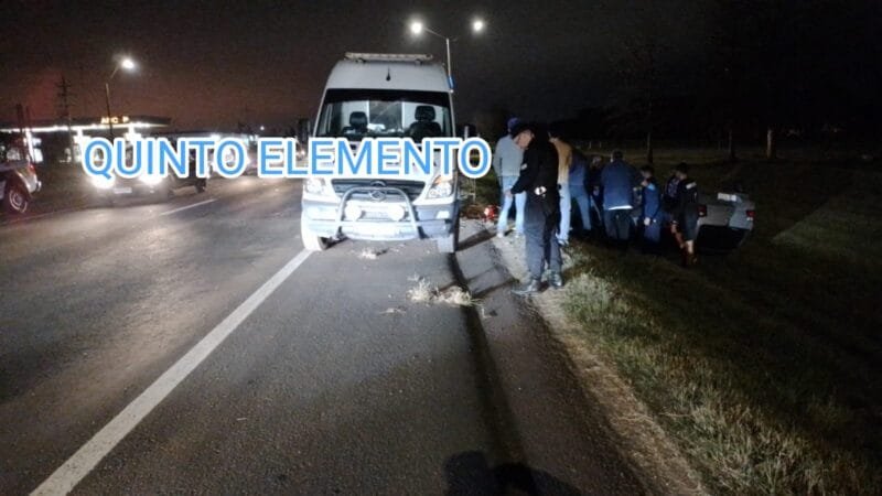 Arribado al lugar se constata, que por razones que se desconocen aún, un automóvil que circulaba al Sur, se cruza de senda, impactando contra columna alumbrado público, quedando en faja natural margen Este, volcando. En el mismo viajaba único ocupante de 53 años y conductor, masculino mayor edad, quien fue trasladado al CAMS, por emergencia médica, resultando politraumatizado, se trabaja en el lugar. Ruta parcialmente Espirometría no se le realizó aún ,porque está en CAM, pero policía está a la espera de eso.