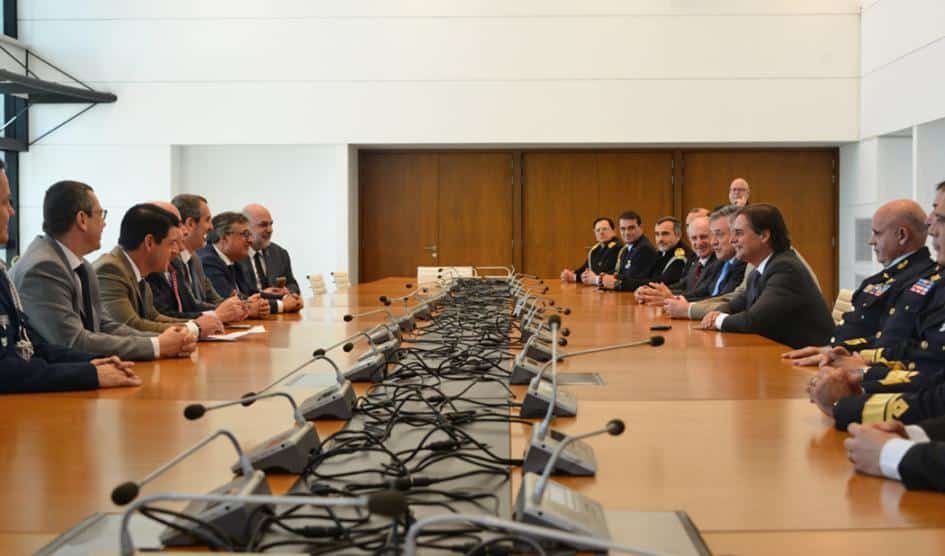 El jerarca estuvo acompañado por el canciller Omar Paganini; el comandante en jefe de la FAU, Luis Héber De León; el embajador brasileño en Uruguay, Marcos Raposo, y el vicepresidente de Embraer, Fabio Caparica.