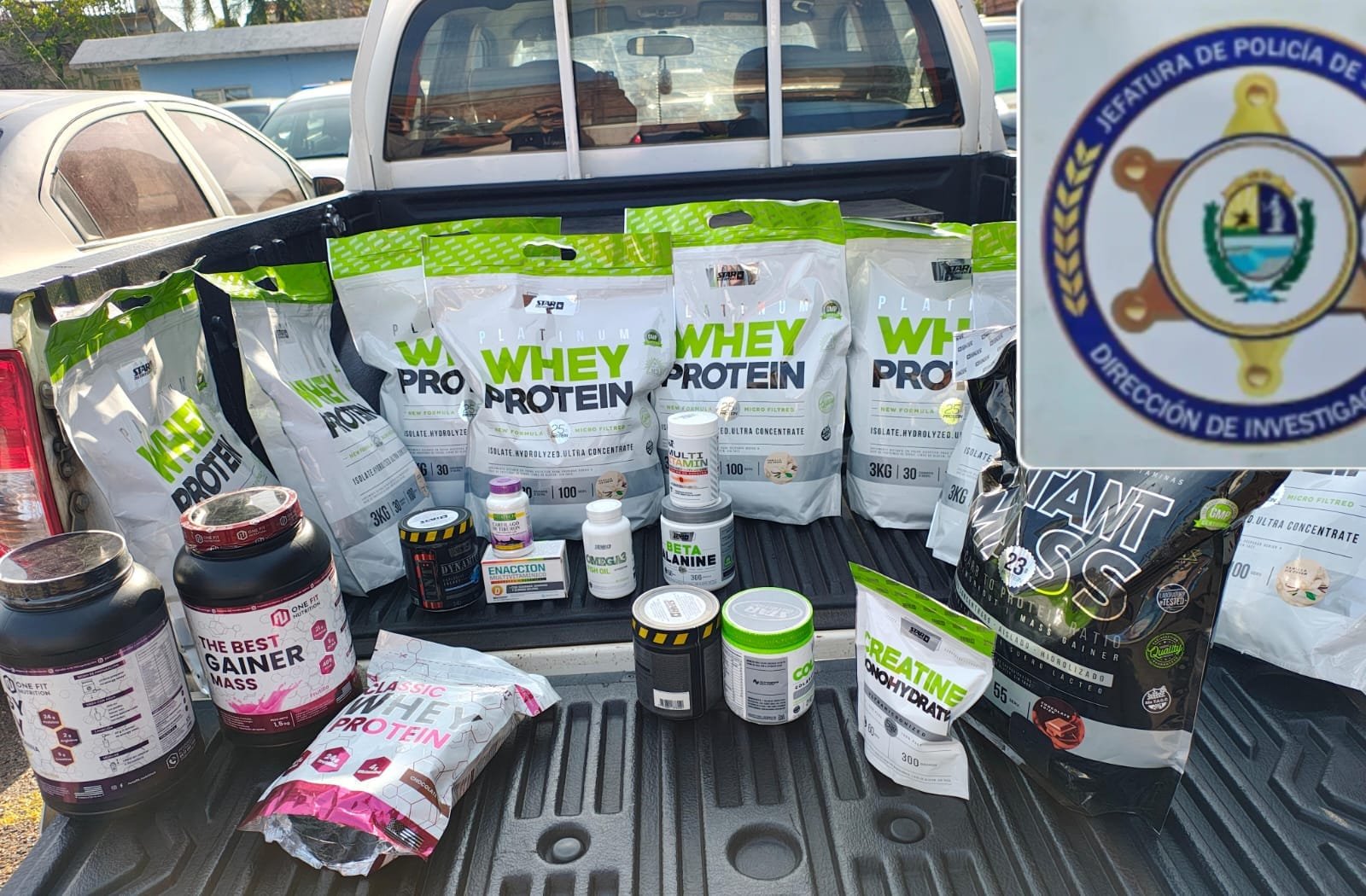 De acuerdo a información colectada y analizada por personal de Áreas Investigativas de la Direccion de Investigaciones, surge que un masculino, mayor de edad (Funcionario Policial en actividad) estaria ingresando mercadería en infracción aduanera desde la República Argentina, por lo que se procede a instalar en el día de ayer puestos de vigilancia, y se realiza seguimiento de un vehículo matricula del departamento color gris que había ingresado al país y era conducido por esa persona, hasta una finca de un barrio de la zona Este de la ciudad, donde se lo intercepta y se procede a inspeccionar el vehículo, localizandose en el interior :