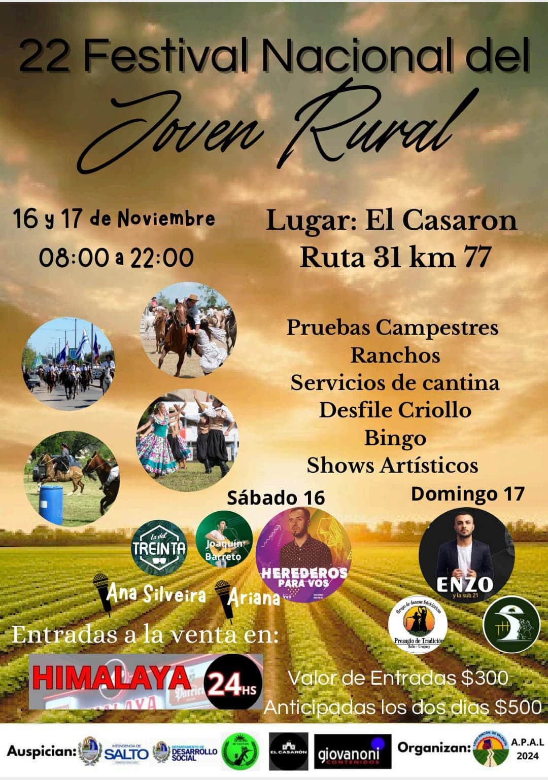 El próximo fin de semana el liceo de Rincón de Valentin estará realizando el tradicional festival Nacional del Joven Rural Vigésimo segunda edición.