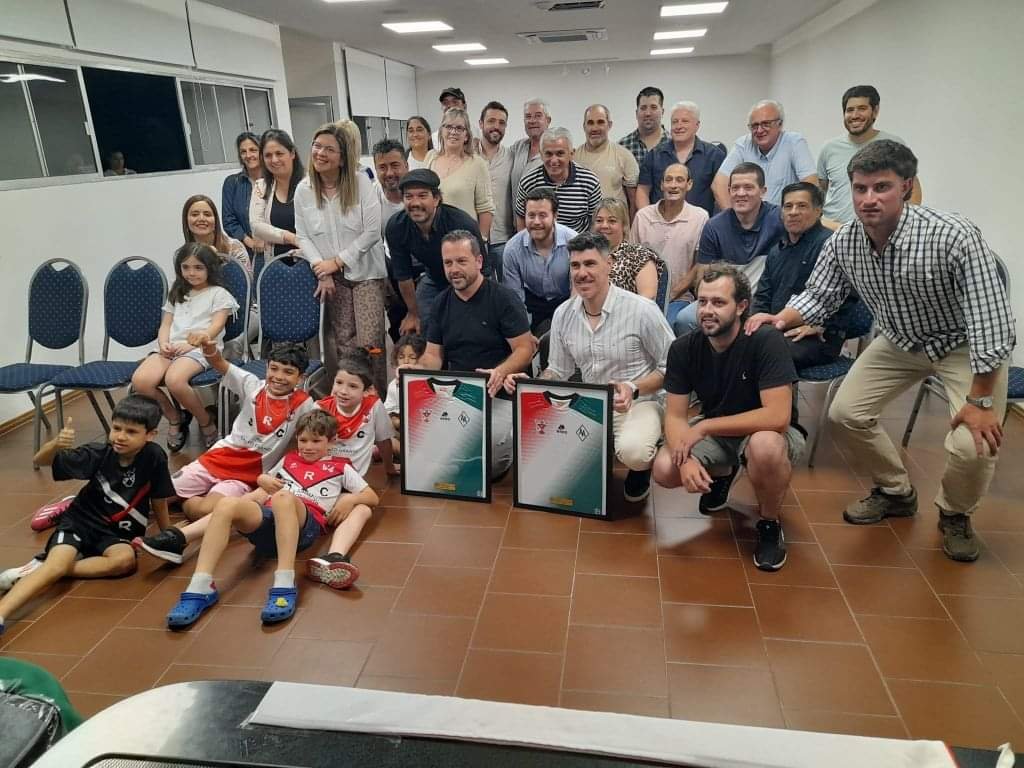 Junto con la firma, se intercambiaron dos cuadros con lo que será la camiseta que utilizarán en este caso ambas instituciones, para transformarse en una, con los colores y escudos de cada una de ellas.
