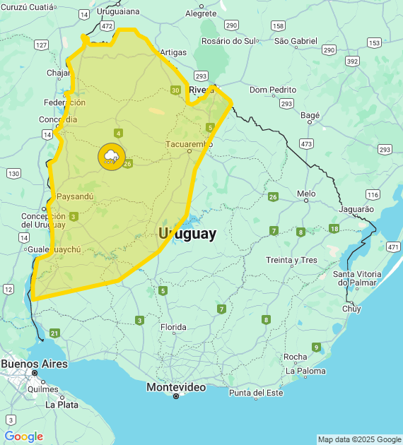 Advertencia meteorológica amarilla por Tormentas puntualmente fuertes