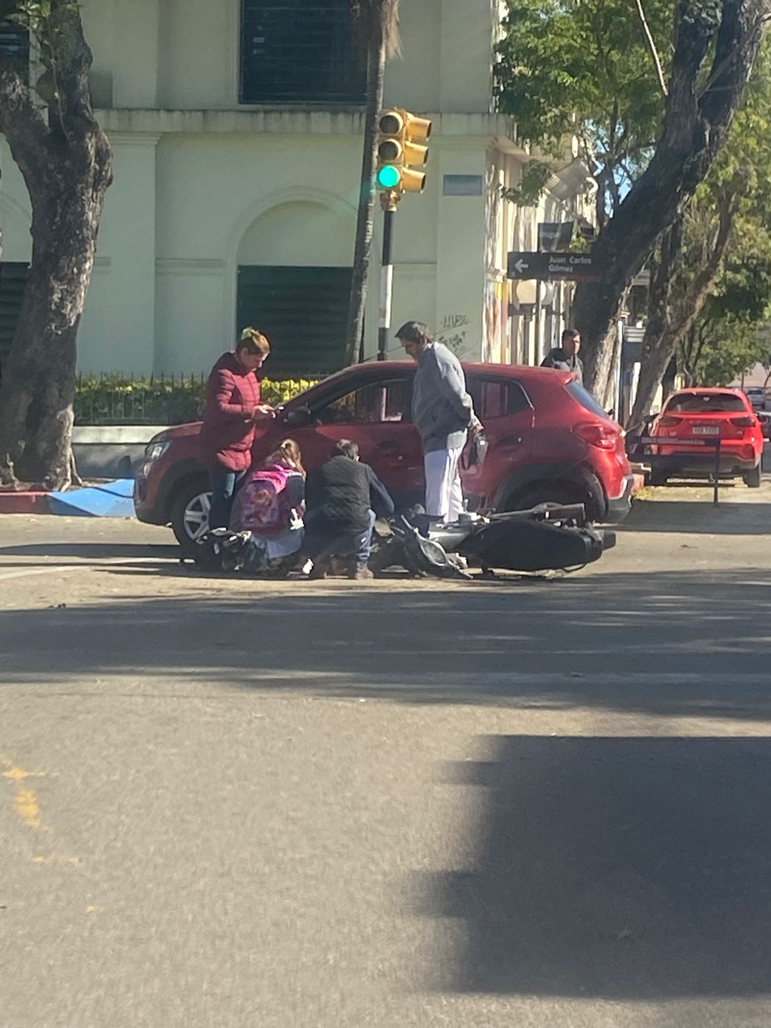Cerca de las 13 hrs un nuevo siniestro de tránsito en Juan Carlos Gomez y Uruguay, a minutos de otro sucedido en Brasil y Zorrilla. Lamentablemente como lo muestra la foto, en esquina semaforizada, en esquina de intendencia de Salto colisionaron un vehículo y una moto. En este caso el conductor de la moto con lesiones ,fue atendido en el lugar por la Unidad de emergencia médica . Actuó en el lugar el equipo de Cuerpo Inspectivo de intendencia de Salto