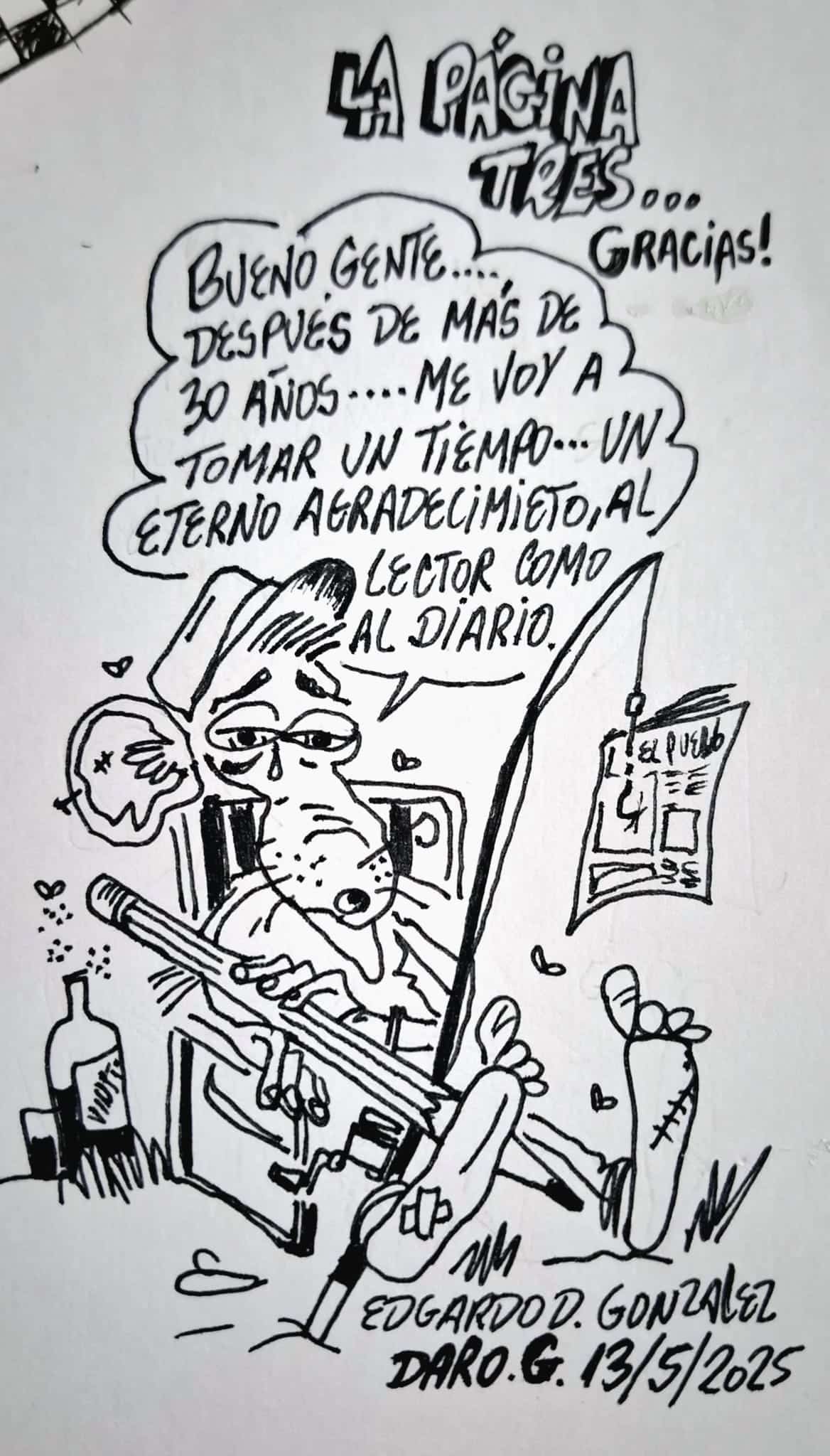 La calidad de la información de un medio de comunicación pasa también por la imágen,por lo que nos relata la fotografía, el misterio de lo que encierra , de lo que significa. Cuenta, opina ,denuncia ,abraza , desespera, interpela. La imágen encierra ese poder de imaginar lo que vemos o sentimos y no es excepción con la caricatura , con ese ADN del cuadro ,de esas alegrías,tristezas que es la vida nuestra y de la gente. Hoy en Quinto Elemento nos interpela y nos moviliza la ausencia, y justamente de quién es desde hace muchos años ,un trabajador incansable , inteligente en sus planteos , maravilloso y único en sus caricaturas. Hablamos de Daro G(artístico),Daro González. Un caricaturista impresionante, que logró marcar su identidad en Diario El Pueblo durante 33 años,con un trabajo maravilloso. Que le dió imagen al deporte salteño con el Ruso Giovanoni en cada página y que fortaleció un medio escrito como el solo podía hacerlo . Fue el «papá» de la Rata de Ceibal y a puño alzado , captó la ironía,el trabajo, el protagonismo de cada noticia, de cada realidad salteña,siempre!! Hoy 33 años después el diario lo baja(no acordaron) y lo cambia por un intento de «imitar»el trabajo de Daro…. claramente y no es lo mismo,es Inteligencia Artificial…!!!