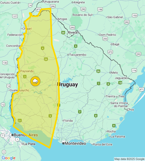 Advertencia meteorológica amarilla por Tormentas puntualmente fuertes