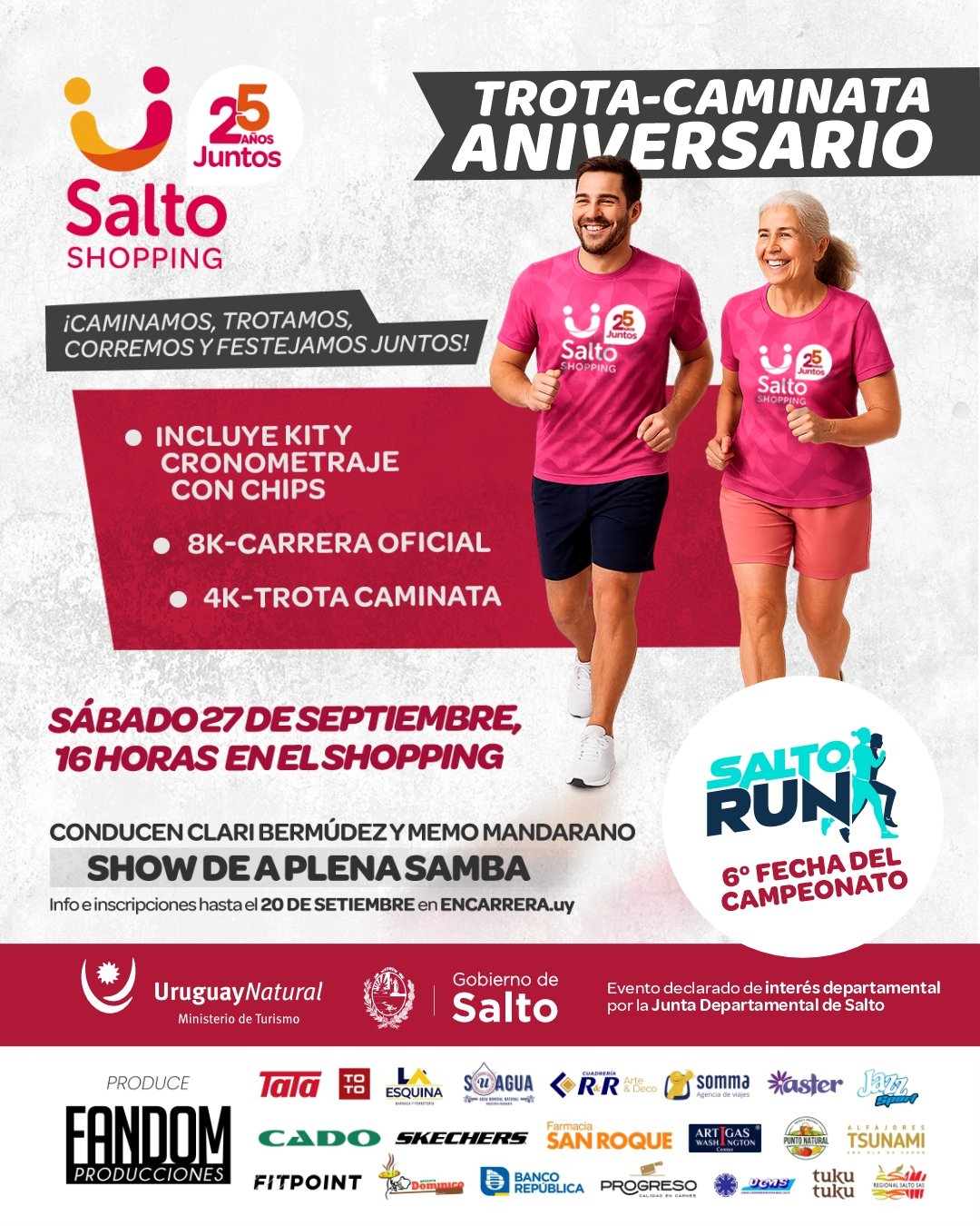 Este evento se realizará el próximo Sábado 27 de septiembre de 2025 y las inscripciones ya están disponibles únicamente vía web en : https://encarrera.uy/salto-shopping/ (pagando solamente a través de la web a través de mientrada.com.uy).