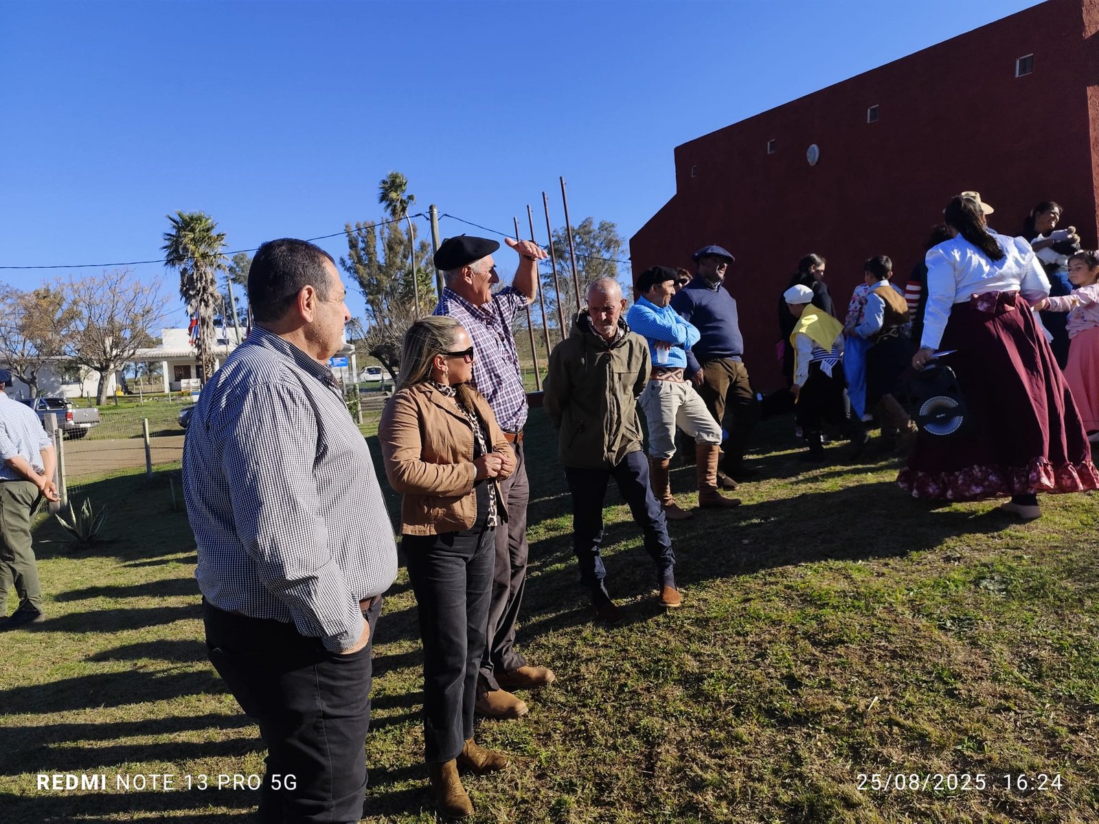 Asimismo, en la jornada de este lunes 25 de agosto, Galliazzi acompañó las celebraciones desarrolladas en la Escuela N.º 62 de Pueblo Cayetano, reafirmando la presencia y cercanía de la Intendencia en cada rincón del departamento.