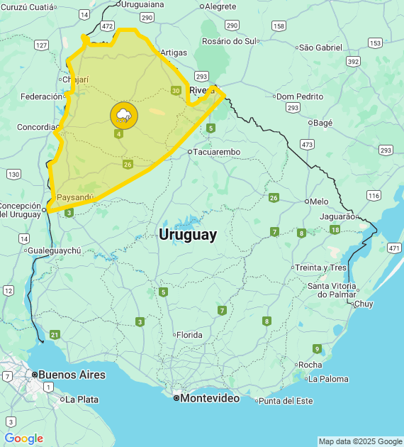 Advertencia meteorológica amarilla por Tormentas puntualmente fuertes