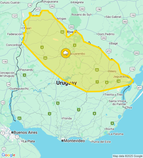 Advertencia meteorológica amarilla por Persistencia de tormentas puntualmente fuertes