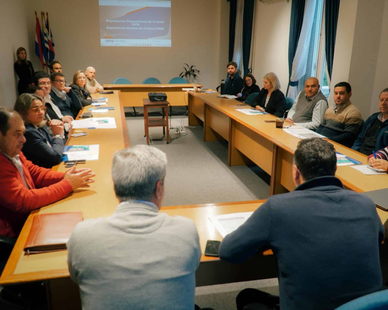 El intendente de Salto, Carlos Albisu, junto al encargado de los Servicios Generales de Salud e Higiene, Carlos Silva; el director de Descentralización, Daniel Galliazzi; el director departamental de Salud, Luis Rodríguez; y los alcaldes de los seis municipios del departamento, participaron en una reunión en el marco del Movimiento de Municipios, Ciudades y Comunidades Saludables.