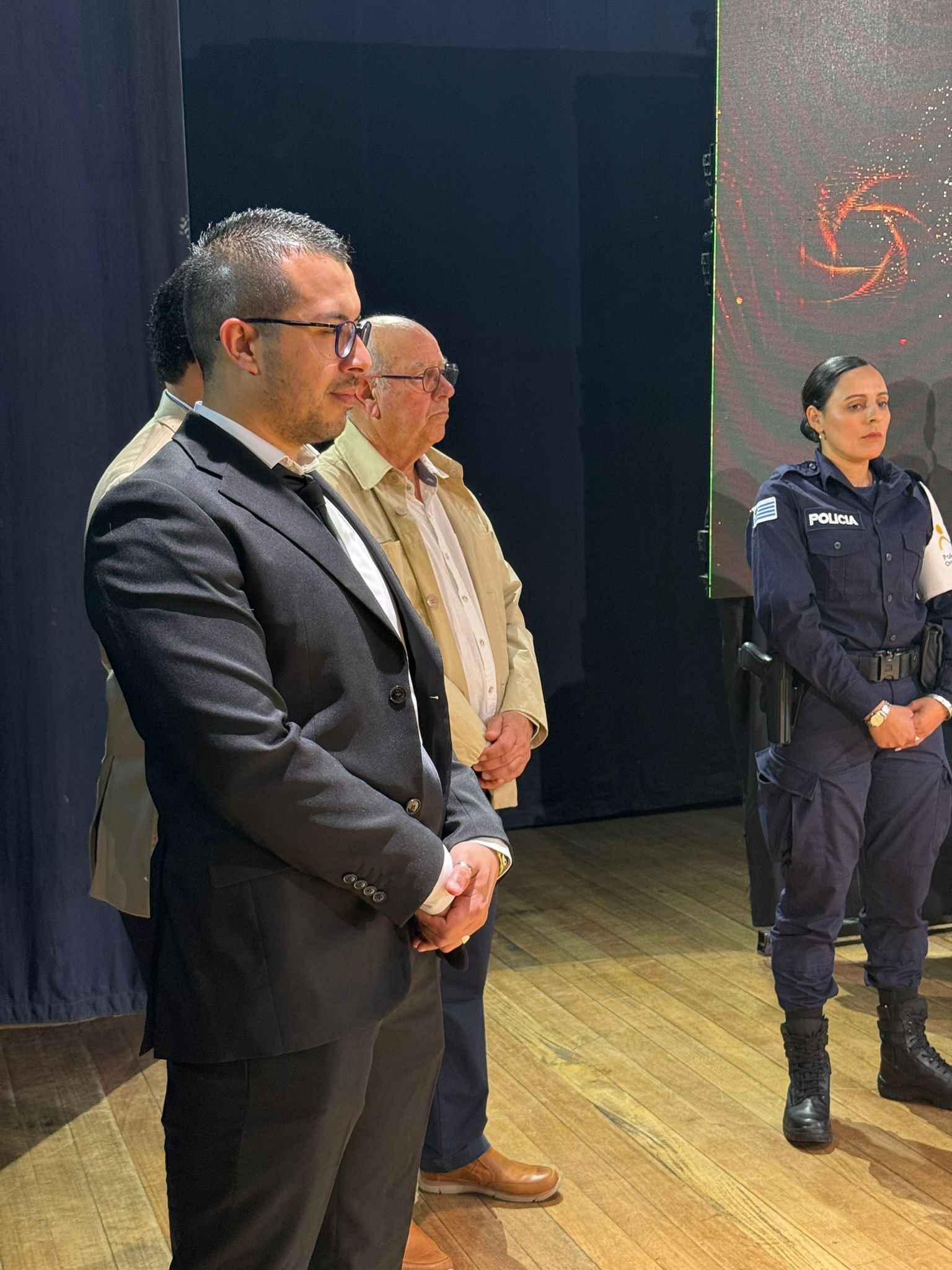 En esta instancia, el Vicepresidente Aramburo tuvo el honor de rendir homenaje y entregar el reconocimiento a la Policía Comunitaria, en el marco de una ceremonia que distinguió a diversas personalidades e instituciones del departamento.