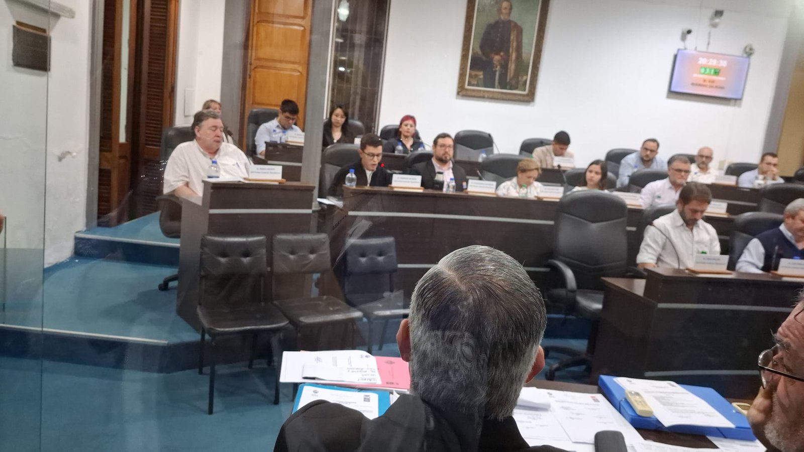 La solicitud del llamado a sala fue leída por el ex director limista y ex director de Servicios Publicos, que mientras leía la nota, se pausaba para que sexescucharan los gritos de la calle,dónde están los cesados y Juan Carlos Gomez .