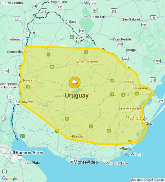 Advertencia meteorológica amarilla por Tormentas puntualmente fuertes y lluvias abundantes
