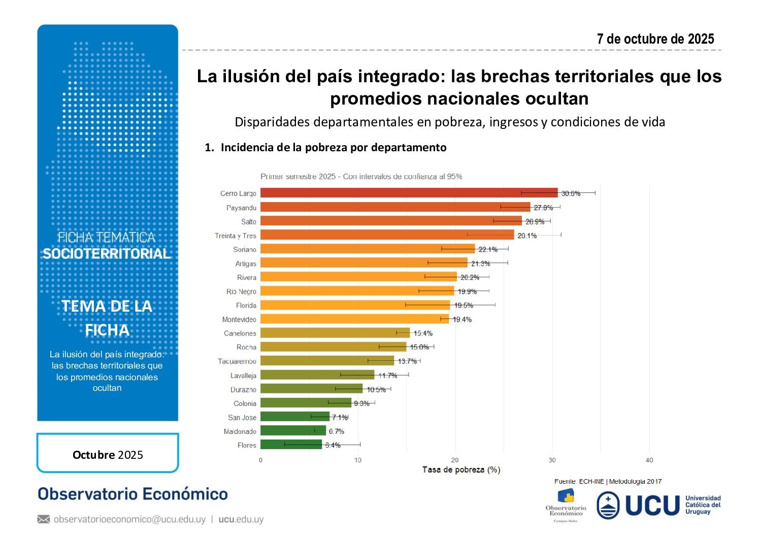 6,7% y San José 7,1%. La tasa de pobreza en Cerro Largo quintuplica la de Flores, evidenciando que Uruguay contiene