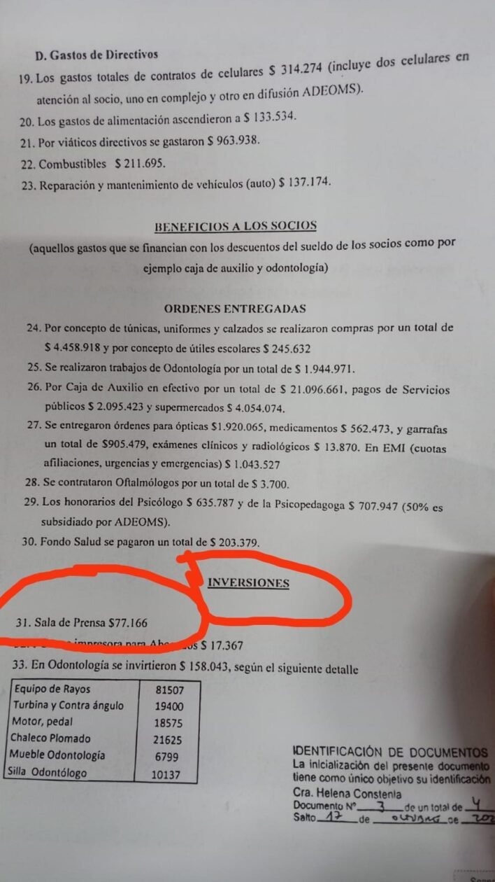 Y lo más triste es que en su despedida natural no explica gastos que reclama y reclamó a los gobiernos de turno. No explica gastos por ejemplo en el punto dos: gastos de comunicación de una empresa que no se sabe cual es, se mete en el balance el 50% de psicopedagoga, mantenimiento de redes y grupos de difusión sin dar nombres. Presente facturas compañero.