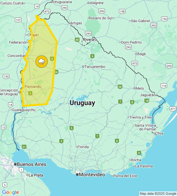 Advertencia meteorológica amarilla por Tormentas puntualmente fuertes y lluvias abundantes