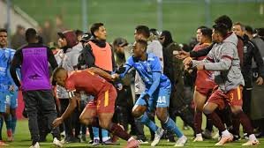 Al instante se formó un tumulto en el que, inicialmente, varios agentes de la Policía trataron de separar los dos bandos con sus escudos, pero la tensión escaló al punto de que algunos integrantes del cuerpo técnico de los dos equipos se fueron a los puños.