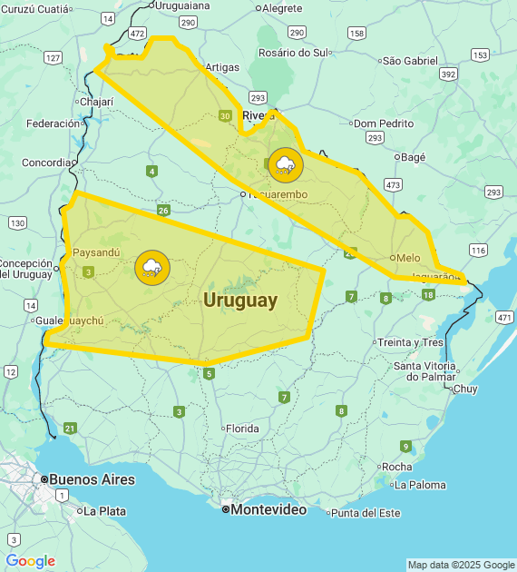 Advertencia meteorológica amarilla por Tormentas puntualmente fuertes