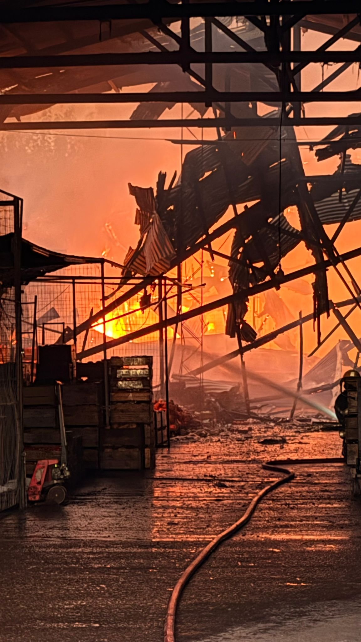 Un incendio en un galpón de acopio del Mercado Regional Norte de Salto causó pérdidas totales.