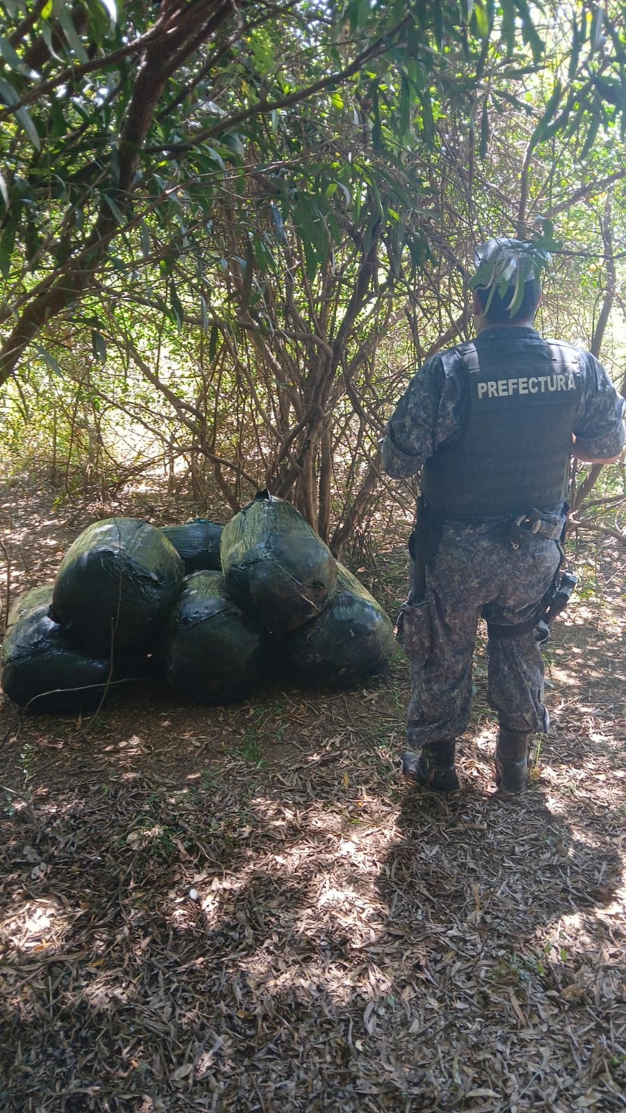 En el día de la fecha siendo la hora 14:10, personal de esta Prefectura que se encontraba realizando tareas de patrullaje a bordo del móvil ARN 2424, en el marco de la Ley Nº19.667 “Patrullaje Fronterizo”, por las proximidades de la zona Cuevas de San Antonio (km 339.200 R.U.), visualizó a dos masculinos saliendo a pie de un predio privado en actitud sospechosa. Al intentar proceder con el interrogatorio, los individuos emprendieron la fuga. Tras ingresar al lugar, se realizó un rastrillaje preventivo por la zona con resultados negativos en cuanto a la localización de los sujetos. No obstante, el personal de esta Prefectura detectó mercadería abandonada en el sitio (7 bultos que, aparentemente, contienen prendas de vestir varias). Ante tal hallazgo, se procedió a dar intervención inmediata a la Administración de Aduanas de Salto.