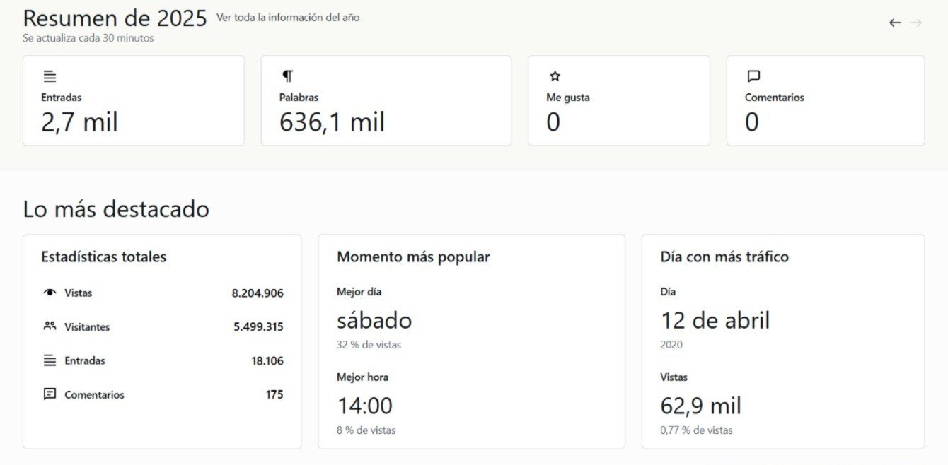 Y ese bebé que fue el portal, un acierto como solo la cabeza de Valeria es capaz de pensar muy parecido a lo que fue el Ruso, su padre, permitió que salieran hijos. Un programa de radio, uno o dos programas de tele en donde nos bancamos las censuras más grandes y ahora un streaming que es nuestro, absolutamente nuestro. De la familia, de todos, de los hijos y de la, hasta ahora, única nieta. LLegar a esta instancia y que nuestro Bruno Pérez, un diseñador de la hostia, un web master presente 24/7 que nos salvó de perder todo no una sino varias veces, nos tire algunos datos nos ponen felices pero sobre todo nos plantan en la realidad de a quienes les dirigimos el trabajo.