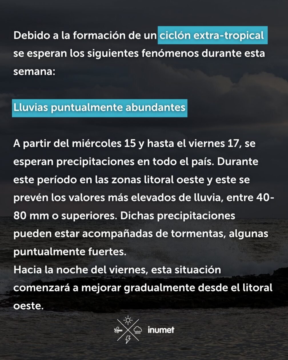 A partir del miércoles precipitaciones abundantes, principalmente litoral oeste Abr 14, 2026 Quinto Elemento