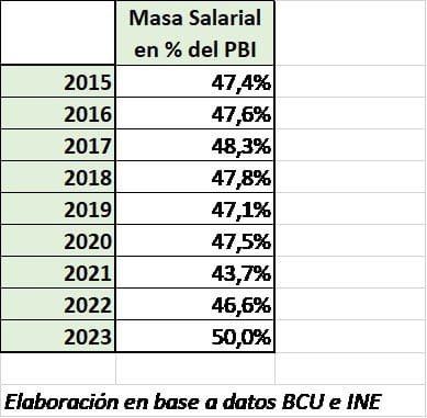 Aquí les comparto los datos verdaderos donde puede verse que en 2023 la porción de la torta que se llevaron los trabajadores uruguayos es 2.9 puntos mayor que en 2019.