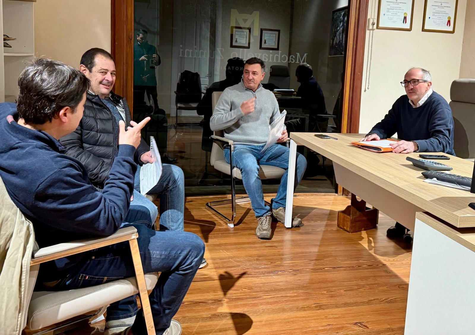 En la sede donde funcionan las oficinas de la transición, Albisu trasmitió a los futuros titulares de esas reparticiones las grandes líneas de acción que se llevarán adelante, manteniendo un rico intercambio con Juan Andrés Machiavello (Cercanía), Daniel Galliazzi (Descentralización) y Hoover Rosa (Comisiones Vecinales).