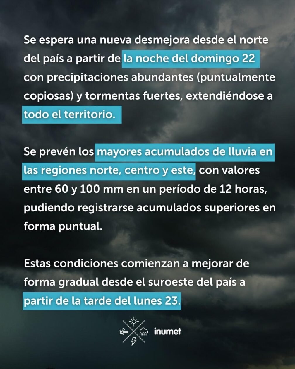 Alerta INUMET por precipitaciones abundantes y puntualmente copiosas a partir de la noche del domingo 22 Mar 22, 2026 Quinto Elemento