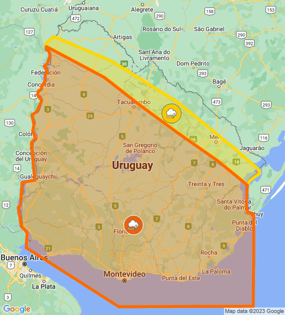 Alerta naranja y amarilla por Tormentas fuertes y lluvias intensas
