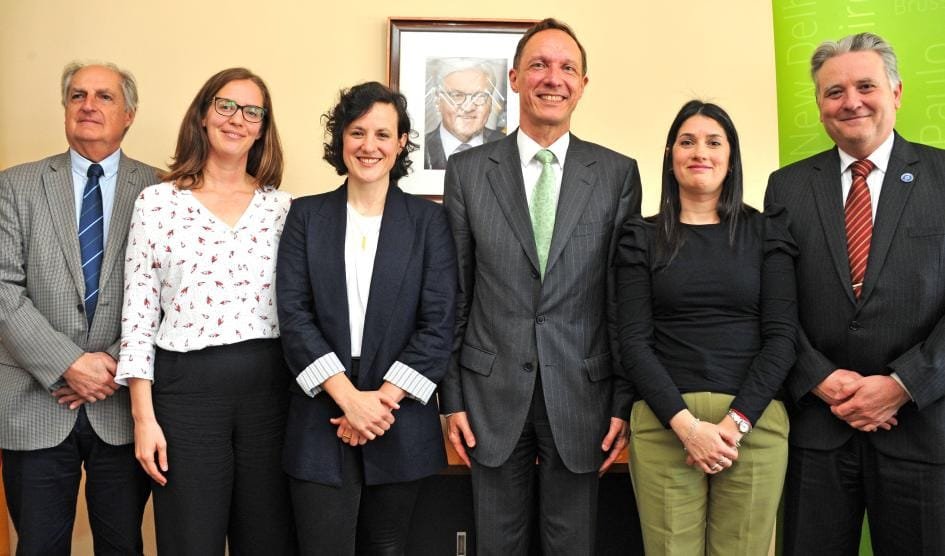 La firma del acuerdo se realizó en la sala de conferencias de la Embajada de Alemania en Uruguay. Asistieron la presidenta de la ANEP, Virginia Cáceres; su par del CFE, Víctor Pizzichillo; el embajador del país europeo en el nuestro, Stefan Duppel, y la directora general del Instituto Goethe, Irene Müller, entre otras autoridades.