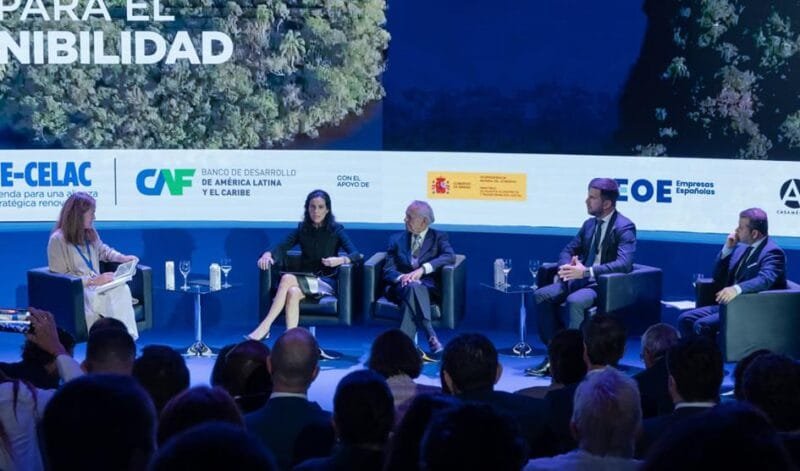 La jerarca integró el panel “Hoja de ruta UE-ALC en la colaboración para el clima y la sostenibilidad”, junto a la abogada española Teresa Ribera; el exministro de Hacienda de Colombia, Mauricio Cárdenas; la directora global de Banca Responsable del Banco Santander, Lara de Mesa; el ministro de Hacienda de Colombia, Ricardo Bonilla; el gobernador de la provincia de Misiones, Argentina, Óscar Herrera, y con el director ejecutivo del Grupo Cox, Enrique Riquelme Vives.