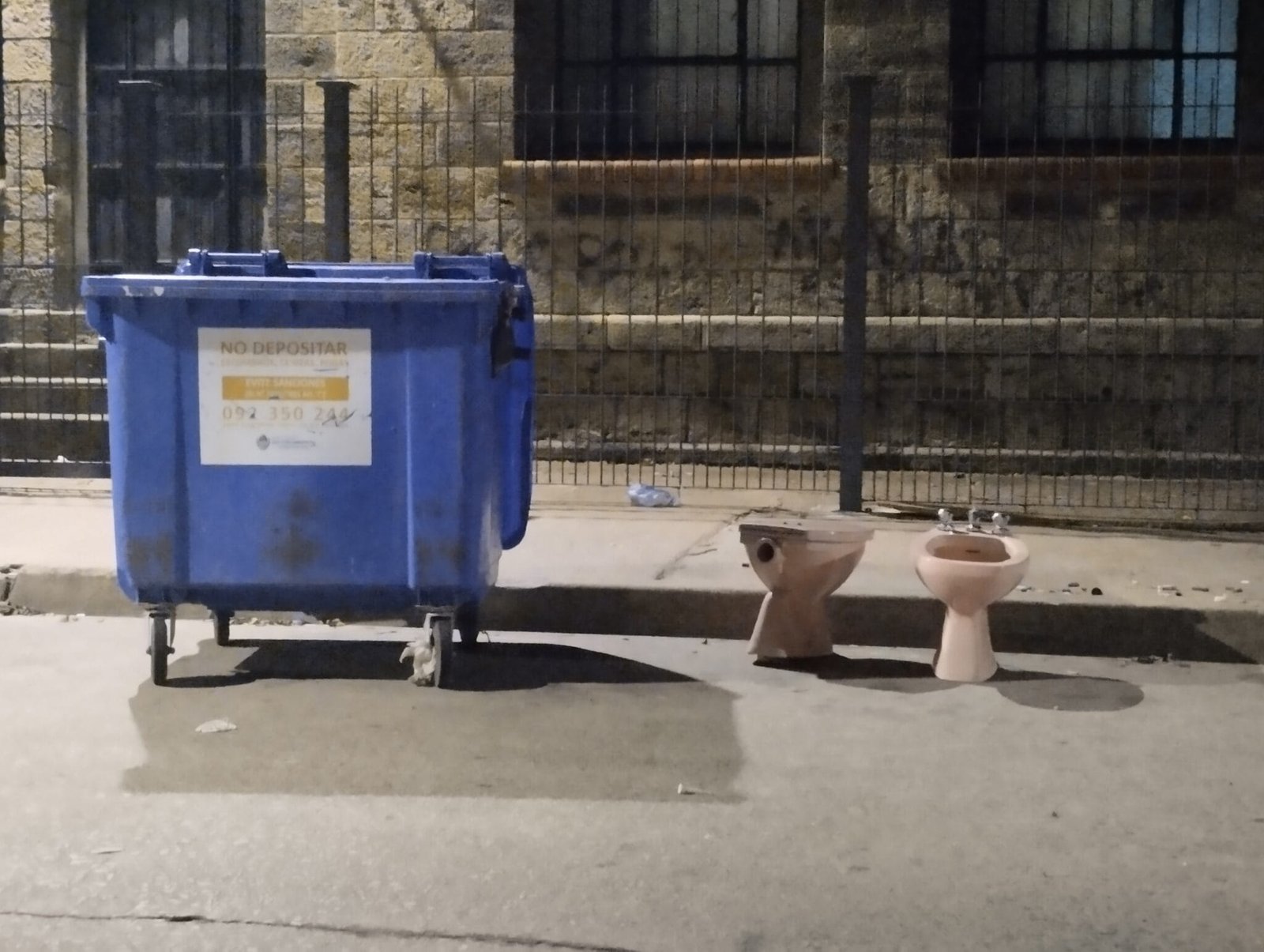Si te sale ir al baño, un baño en el centro. Water y bidet armados al costadito del contenedor.