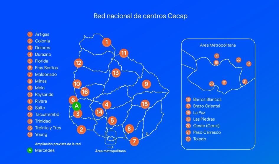 Para conocer la ubicación de los centros, correo electrónico y teléfono de contacto es posible acceder a www.mec.gub.uy/portalcecap
