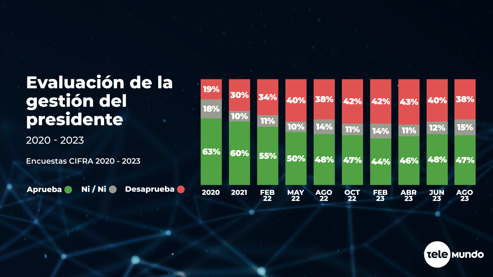 A artir de 2022 la evaluación de su gestión comenzó a ser menos positiva, y tuvo su punto más bajo a comienzos de este año, cuando sólo el 44% aprobaba su desempeño y otro 42% lo desaprobaba.