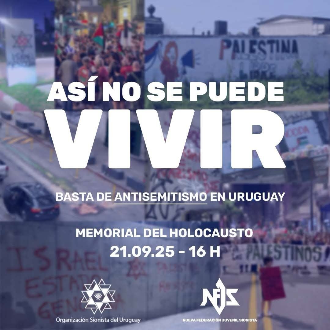 La Organización Sionista del Uruguay realizó este domingo una concentración en el memorial al Holocausto en la Rambla de Montevideo en contra del antisemitismo, bajo la proclama “así no se puede vivir