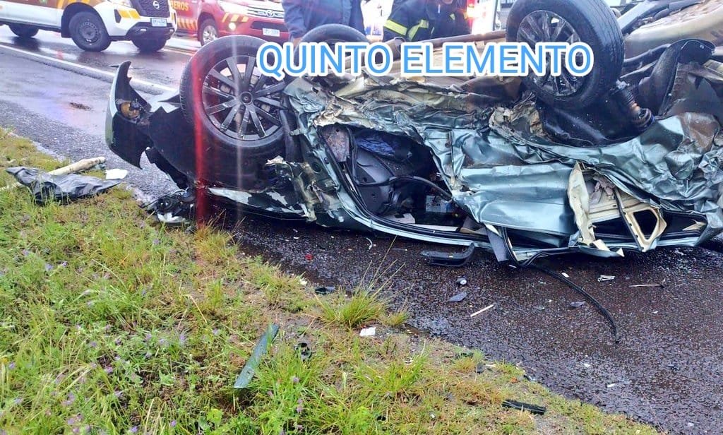 ambos vehículos volcaron, el primero sobre banquina Oeste quedando en posición invertida. Su conductor (único ocupante) resultó fallecido, en tanto el segundo vehículo queda en posición en faja natural del lado Oeste; ambos ocupantes lesionados.